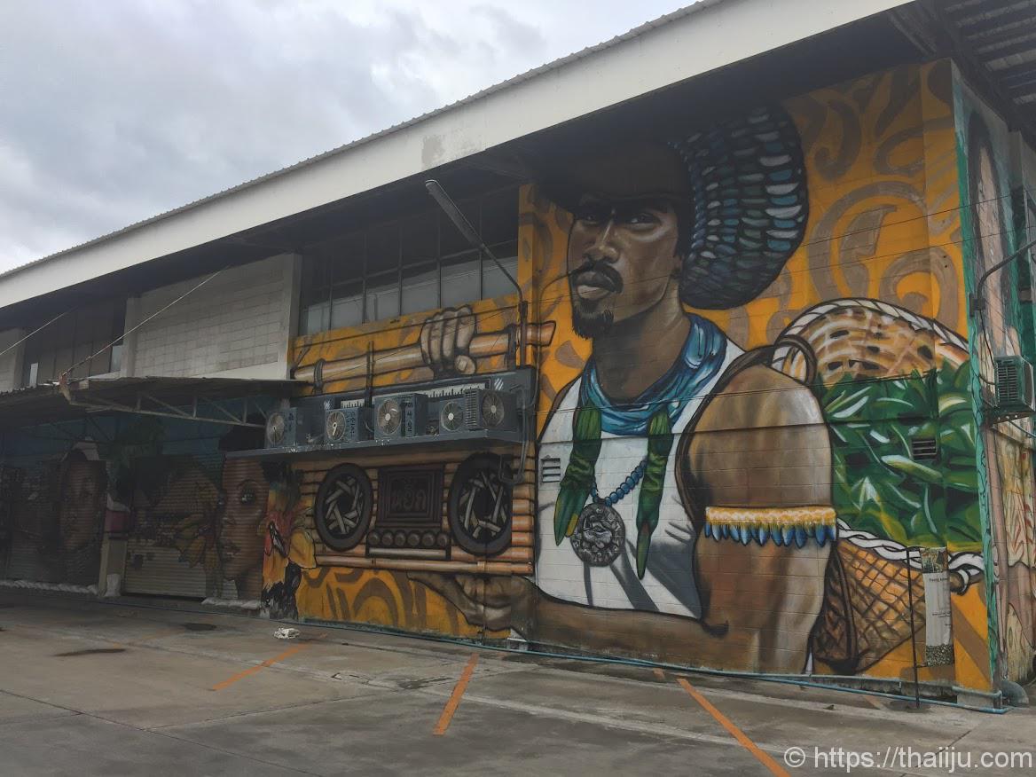 進んでいくと左手にグラフィティアートがあります。なかなか大掛かりなウォールアートですね。