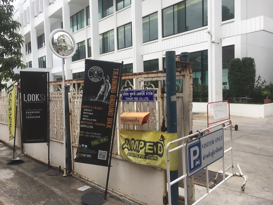 これ、施設の入り口です。プラカノン郵便局と沖縄金城がある通りをまっすぐいくと右手にこの入り口があります。