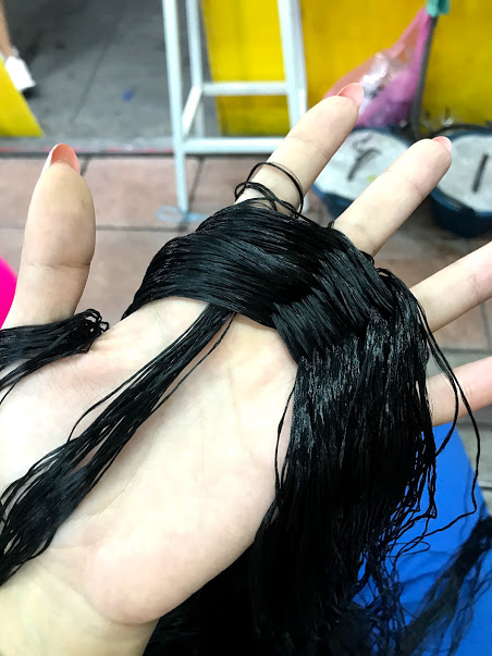 こんな感じで上半分根元を先に全頭編んでから一気に下半分仕上げに入る感じです。この私安らかに寝てる、、、何時間も座ってれば寝てしまいます。寝ててもちゃんとその間編んでくれてるのでご安心を。