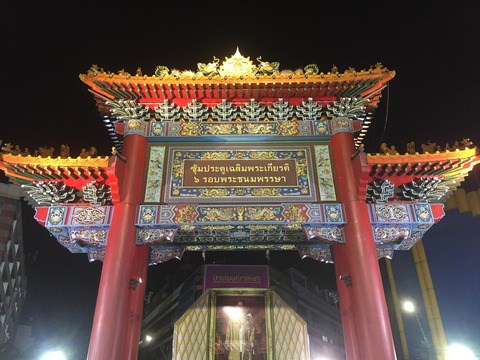駅から歩いていくと、ヤワラートロードの入り口に中華街門がドンと構えていて、ここが写真スポット!!!