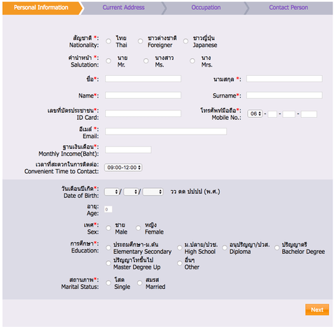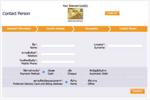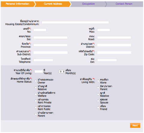 web申請についてですが、上記にも書いた通り、タイ語と英語です。