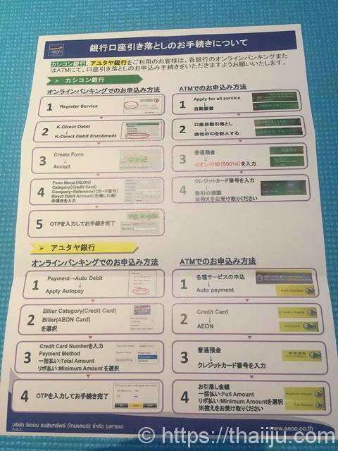 カシコン銀行とアユタヤ銀行から引き落としの場合は写真のような手続きが必要とのこと。