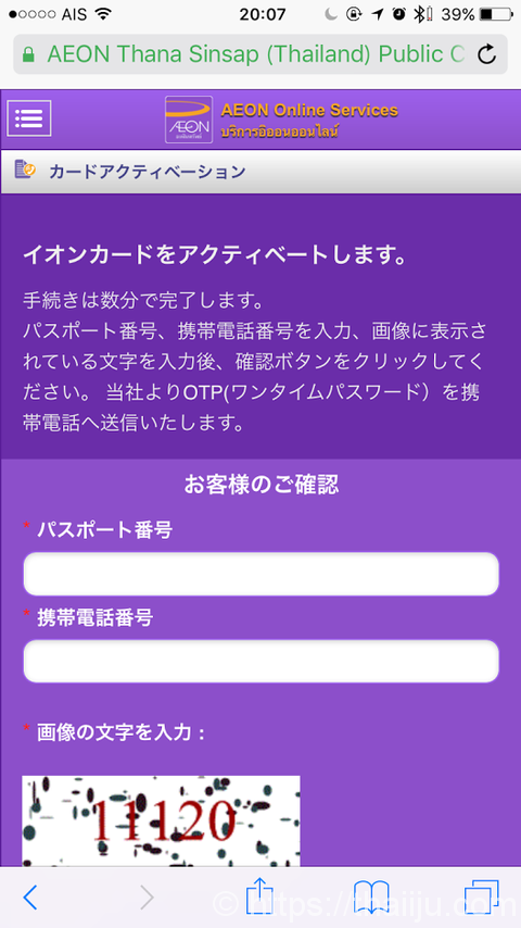 パスポート番号と携帯電話番号、画像の数字を入力すると、