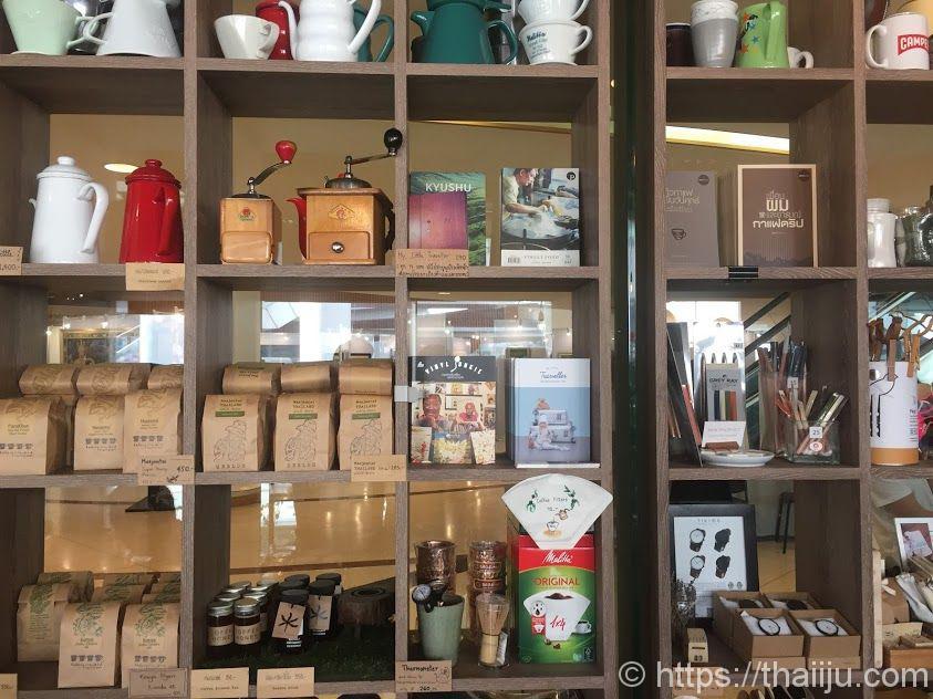 コーヒー豆やコーヒーにまつわるグッズも販売しています。