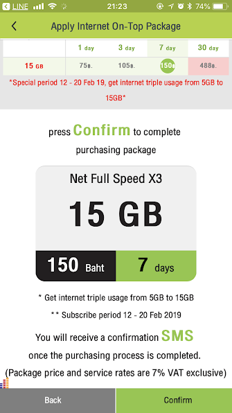 そのあとはパッケージ購入用のUSSDに発信してパッケージ購入完了です。(後述のmyAISからパッケージ購入もできます)