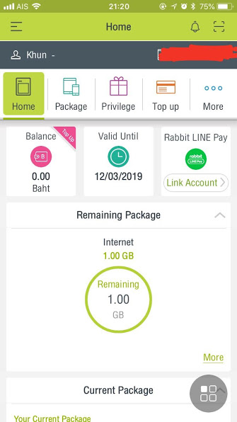 そうしたら電話アプリからパッケージ購入のUSSDに発信するとトップアップした料金から対象のパッケージ料金が差し引かれて無事パッケージ購入の完了です。(後述のmyAISからパッケージ購入もできます)