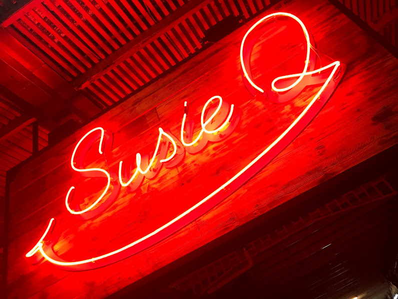 この写真の、赤く光るネオン看板が店の看板です。ここはカオサンロードから少し奥に入ったsusie walking streetという小道沿いにあります。あとで地図など詳しく載せますね。