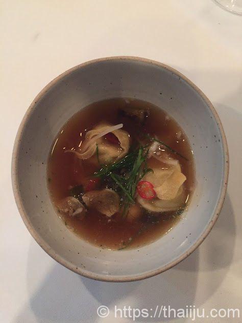 サイフォン式コーヒー器具を使ってスパイスの香りづけをしたスープでした。